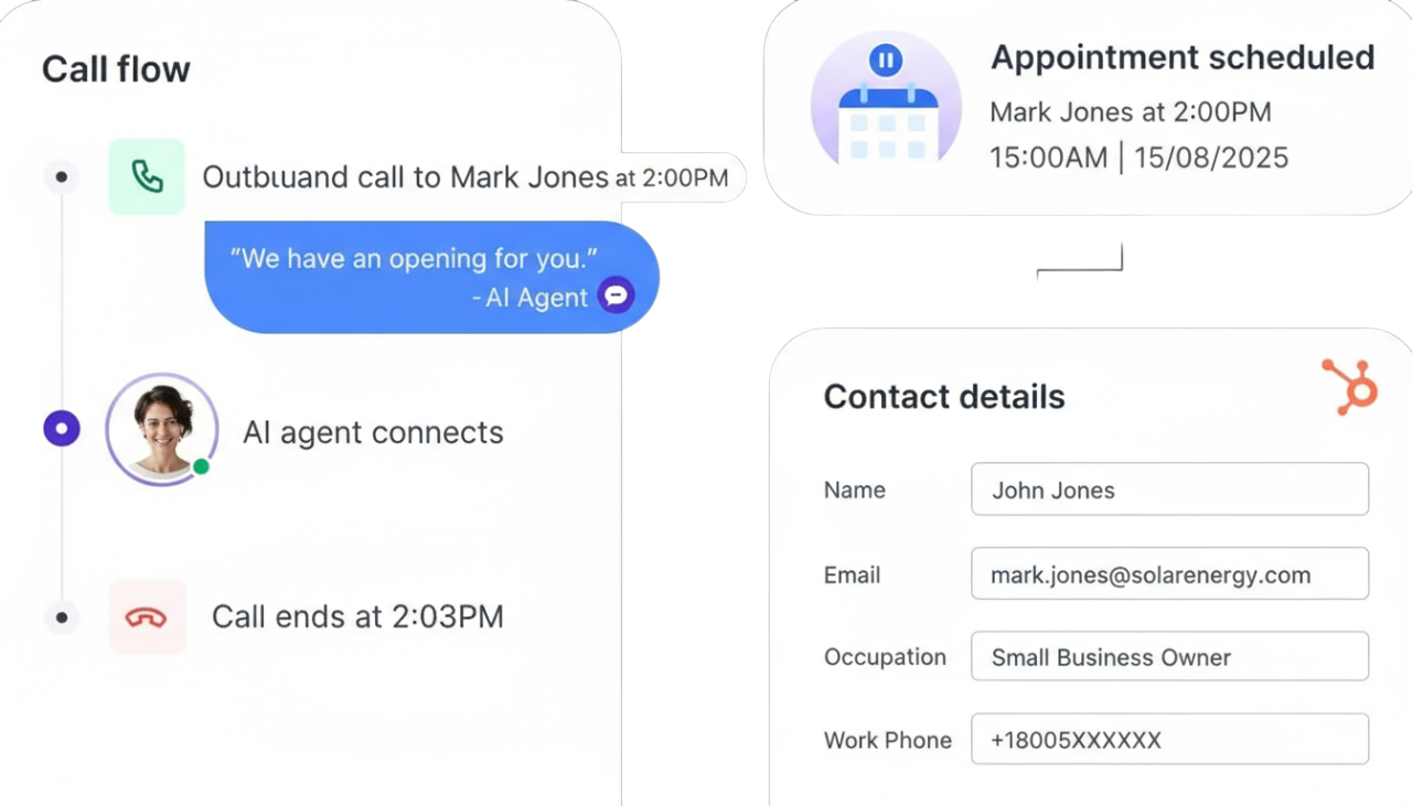 Intelligent virtual agents handle repetitive tasks, qualify leads, and manage CRM workflows — so your human team can focus on what matters most.